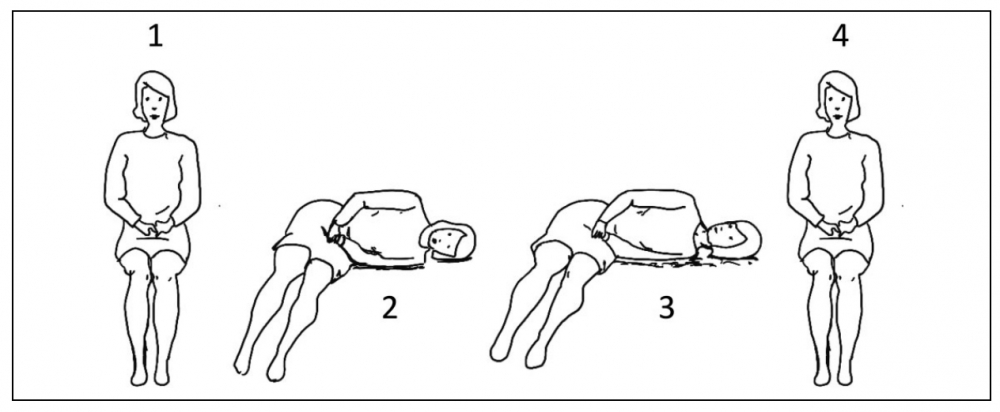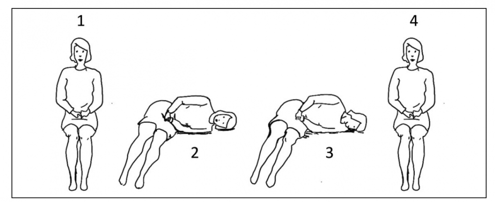 - After 1–2 min in this position, the patient is brought back to the sitting position,and the head may rotate back to the neutral position (Figures 2 and 3, position 4).