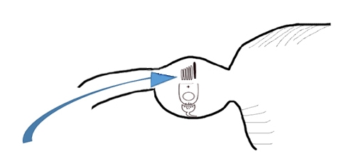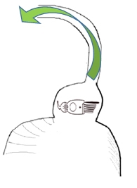 Head motion is detected because the semicircular canals are filled with endolymph. When the head begins to rotate, the bony canals move with it. However, the viscous endolymph is not physically attached to the head, and therefore lags behind due to inertia. Thus, relative to the canals, the endolymph rotates in the opposite direction of head turn. The rotating endolymph displaces the cupula and stimulates the stereocilia, causing a neural signal which indicates the rotation6. With the three semicircular canals aligned at right angles to each other, rotation in any direction can be resolved.