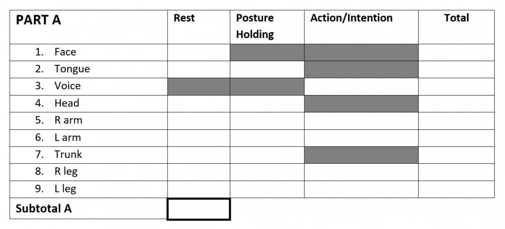 3) With ACTion and INTention (UE: finger to nose and other actions; LE: toe to finger in a flexed posture)